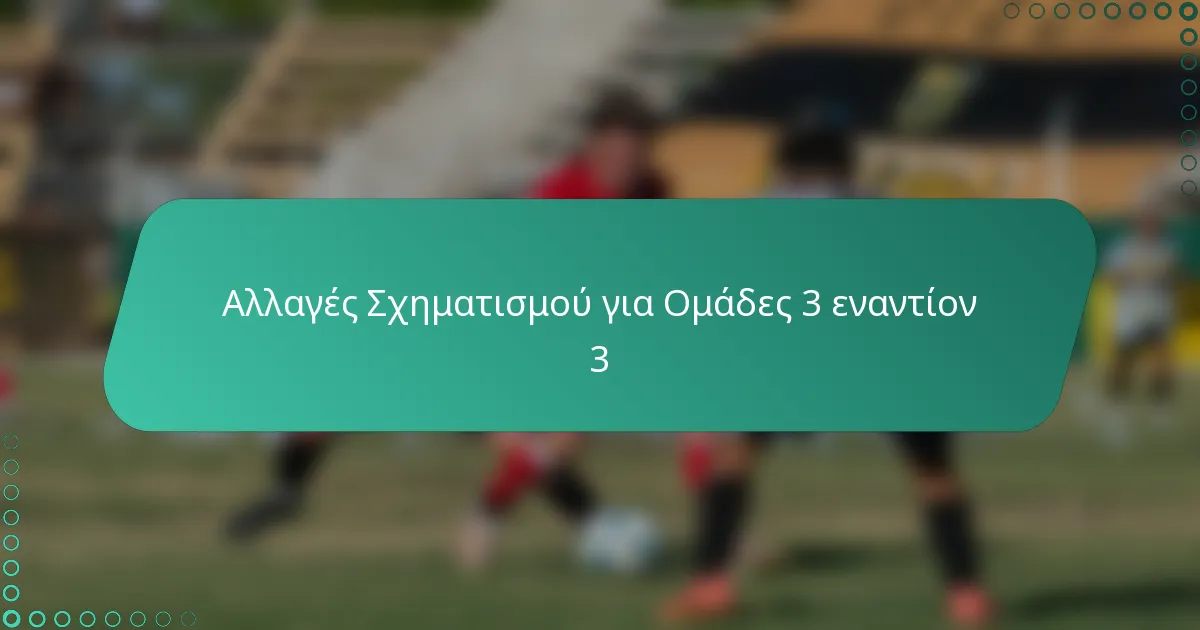 Η εφαρμογή αλλαγών σχηματισμού για ομάδες 3-α-πλευρά απαιτεί σαφείς στρατηγικές και αποτελεσματική επικοινωνία. Εστιάστε στην πρακτική συγκεκριμένων ασκήσεων, στη μετάβαση ομαλά κατά τη διάρκεια των αγώνων και στην πραγματοποίηση προσαρμογών κατά τη διάρκεια του παιχνιδιού με βάση την απόδοση.