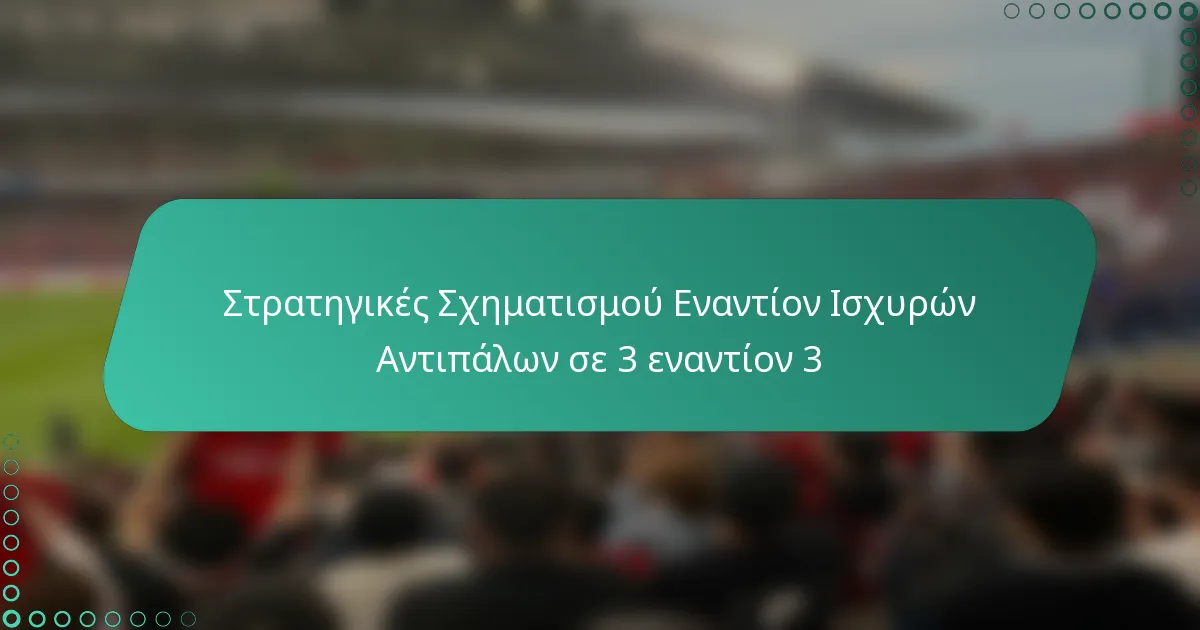 Για να αντεπεξέλθουν αποτελεσματικά σε ισχυρούς αντιπάλους σε ένα παιχνίδι τριών κατά τριών, οι ομάδες πρέπει να εφαρμόσουν έναν συνδυασμό τακτικής τοποθέτησης, γρήγορων μεταβάσεων και ισχυρών αμυντικών στρατηγικών. Αυτές οι προσεγγίσεις επιτρέπουν στις ομάδες να εκμεταλλευτούν τις αδυναμίες, να δημιουργήσουν ευκαιρίες σκοραρίσματος και να προσαρμοστούν στη ροή του παιχνιδιού.